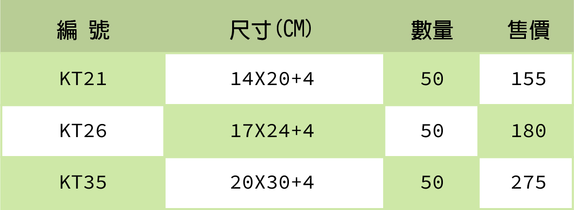 規格介紹: 牛皮紙質感的表面,內層材質為鋁箔。